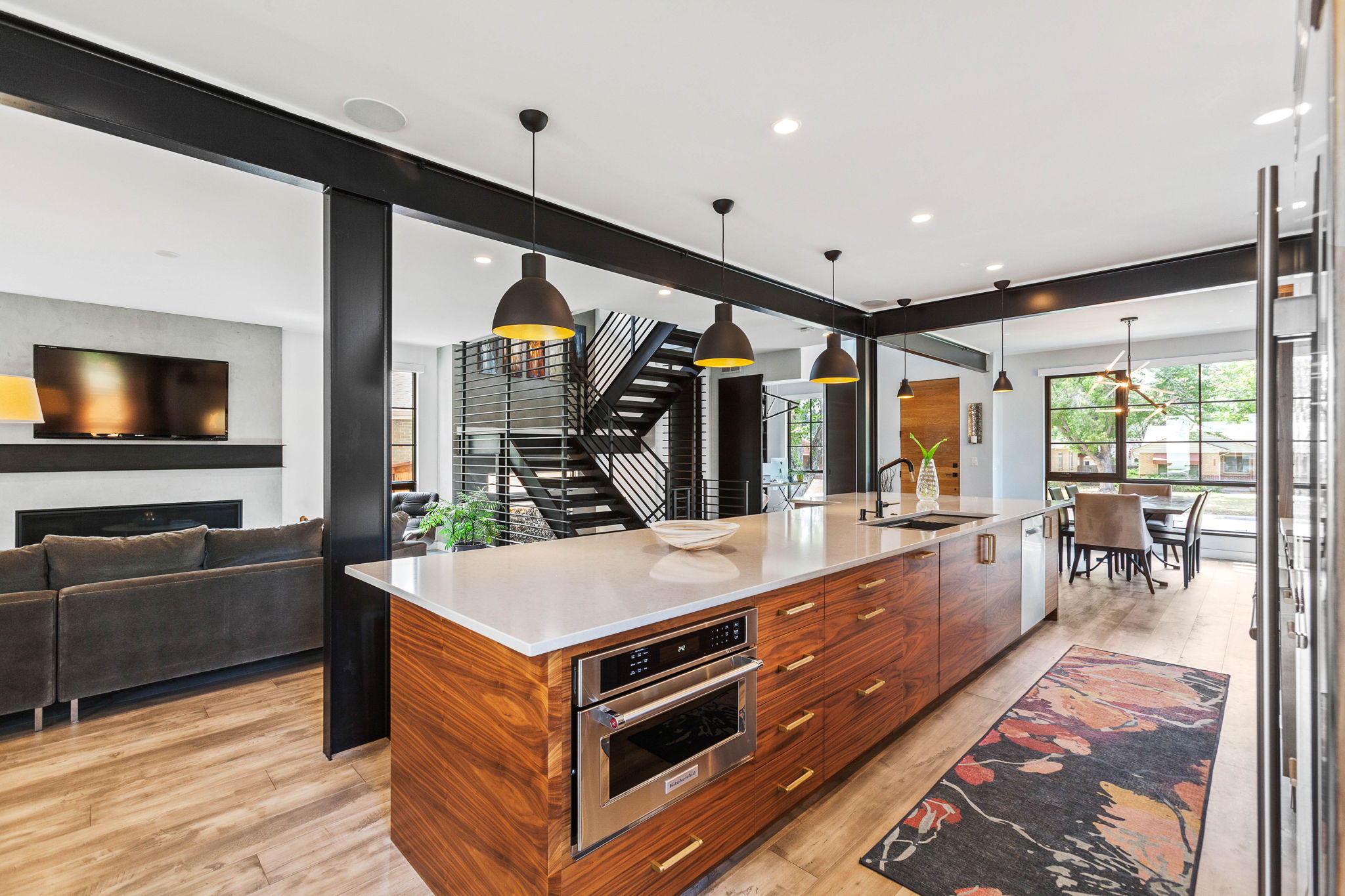 A modern industrial home blends the raw, utilitarian aesthetic of industrial design with sleek, contemporary features, creating a bold yet functional living space. It embraces a design philosophy that highlights exposed materials, open spaces, and a minimalist approach, often resulting in a loft-like atmosphere with an emphasis on urban sophistication.